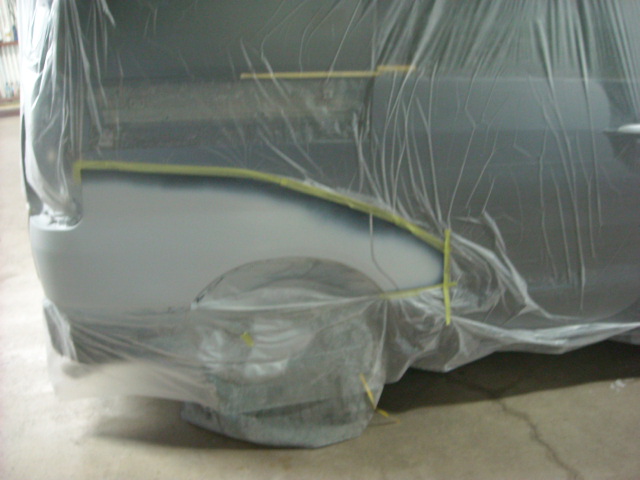 こちらは仕上げパテ180番です、この下には鈑金パテ中間パテの2回分の工程が入っています、合計3回でサフェサーを入れます。 |